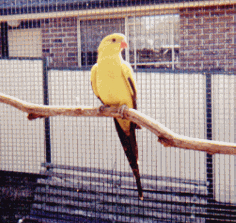 The Regent parrot, also known as the smoker and rock pebbler is a member of the Polytelis family that also includes the Princess and Superb parrots. The Regent parrot is found in northwest Victoria and southwest New South Wales and into S.A. It is also found in Southern WA. The Western Australian parrots are usually greener and sold under the name of Green Regents. They are the largest Polytelis and are much stockier than the rest of the family. The males are usually bright yellow or Yellow/Green with bright red feathers in their wings surrounded by black feathers in the wings and tail. The females are much greener especially around the head area, immature birds resemble the female. They are about 39cm long. Their habitat in the wild is River Red gum and Black Box woodlands near farming areas. They are usually found in small groups or pairs.